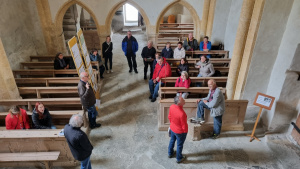 Nach einem gemeinsamen Mittagessen im Gasthof Bad Weiherburg ging es weiter zur romanischen Kirche St. Nikolaus in Matrei. Dort erzählten uns Univ.-Prof. Dr. Harald Stadler und Landeskonservator Dipl.-Ing. Walter Hauser viel Interessantes zur Baugeschichte der Kirche, den Fresken und zu den Grabungskampagnen. Ein Blick in den Dachstuhl des Kirchturms wurde uns ebenfalls gewährt. Zum Abschluss der Führung bereitet uns der Heimatkundliche Verein Medaria noch einen kleinen Empfang mit Getränken.