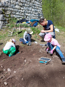Zu den Vereinsaktivitäten für unser jüngeres Publikum zählen die archäologischen Grabungen für Kinder im Alter von 6-12 Jahren, die seit 2007 für den damaligen Tag des Denkmals ins Leben gerufen wurden und seither einmal jährlich stattfinden. Es zeigte sich über die vergangenen Jahre, dass gerade Kinder und Jugendliche sehr schnell bereit sind, sich für archäologische Themen zu begeistern und sich eifrig und engagiert damit auseinanderzusetzen. Bereits zum 17. Mal veranstaltete der Verein am Samstag, den 6. Mai 2023 seine archäologische Kindergrabung, wie schon in den letzten Jahren wieder in Kooperation mit Chronos – Verein für Dorfgeschichte, Thaur.
