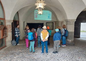 Am 10. August begrüßten wir die teilnehmenden Kinder im Innenhof der Burg Hasegg. Nach einem gemeinsamen Erinnerungsfoto folgte eine kurze Einführung mittels PowerPoint-Präsentation, bei der das Programm erklärt und die Handhabung der Tablets vorgestellt wurde. Anschließend bildeten die Kinder drei Gruppen und gaben sich kreative Teamnamen – dann konnte die Rallye beginnen.