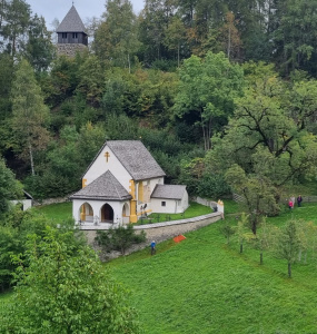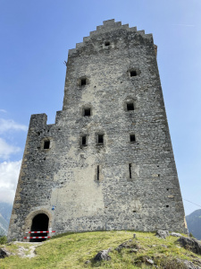Auch den etwas oberhalb der Kirche auf einem Hügel stehenden massiven spätmittelalterlichen Turmstumpf, der mit einem Holzaufbau als Glockenturm adaptiert wurde, ließen wir uns nicht entgehen. Der eine oder andere wagte sogar den Aufstieg in den Glockenturm.