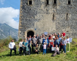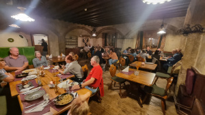 Zwischen Zams und Schönwies thront auf einem Felsen hoch über dem Inntal die märchenhafte, sagenumwobene Kronburg. Am Fuße der Kronburg liegt das Klostergut Kronburg mit dem gleichnamigen Gasthof – unser nächstes Ziel. Vor dem Mittagessen stand jedoch noch der Aufstieg zur Ruine auf dem Programm. Ein Ritter dient dem Kloster und hütet dessen Burg: Ritter Requiem vom See begrüßte uns auf dem Weg nach oben. Hinter dieser Rolle verbirgt sich Ing. Peter Fritz, Mitglied der Gruppe „Rescue Kronburg Rettung“, die sich um den Erhalt der Burg kümmert.